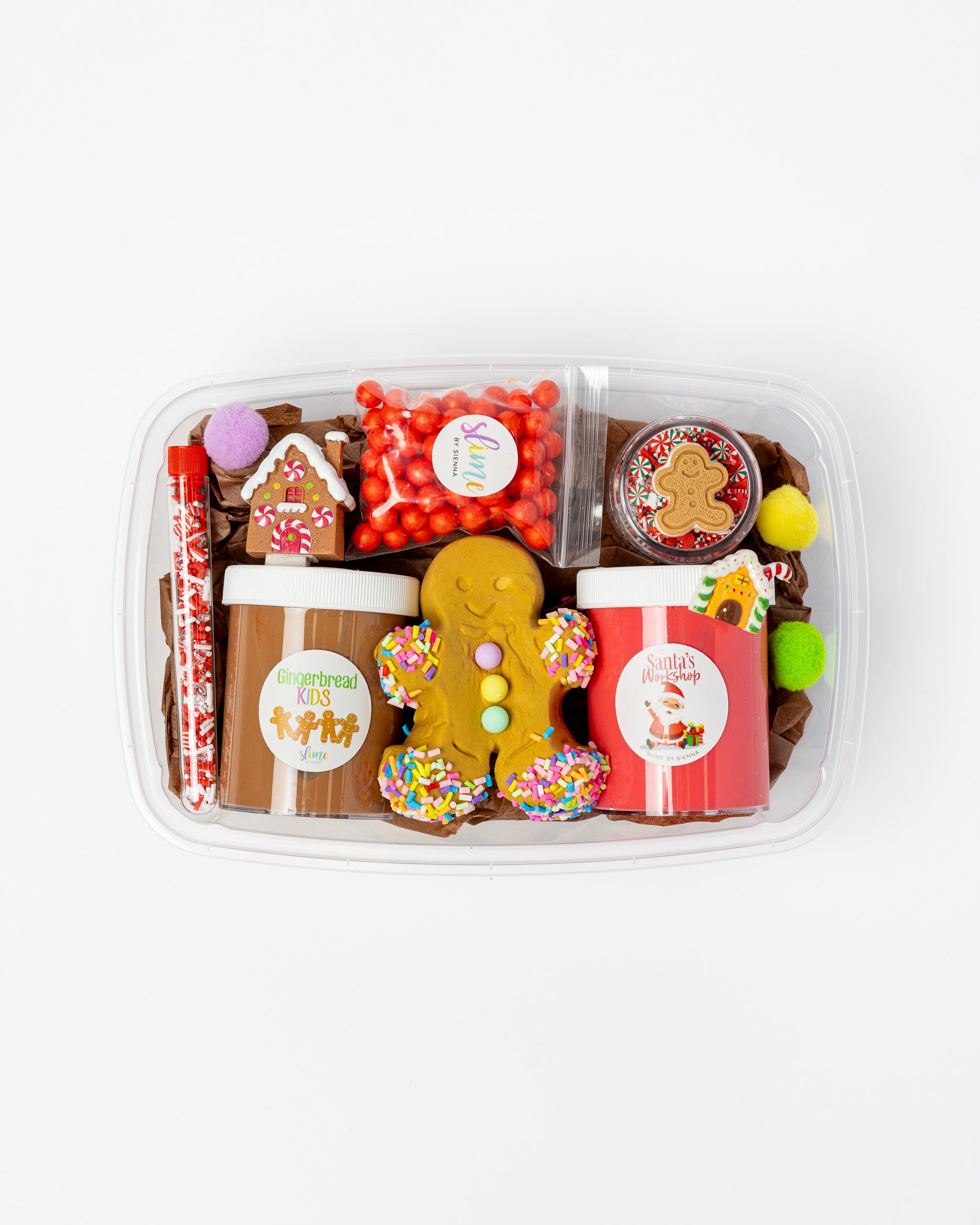 Step into a world of sugary sparkle with our Gingerbread House Slime Pack!