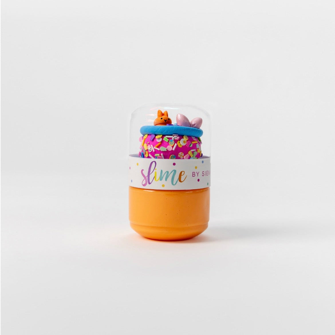 A super cute container filled with orange thick & glossy slime on the bottom and Easter ice cream inspired clay to mix into your slime for a butter consistency with sprinkles and charms on top!