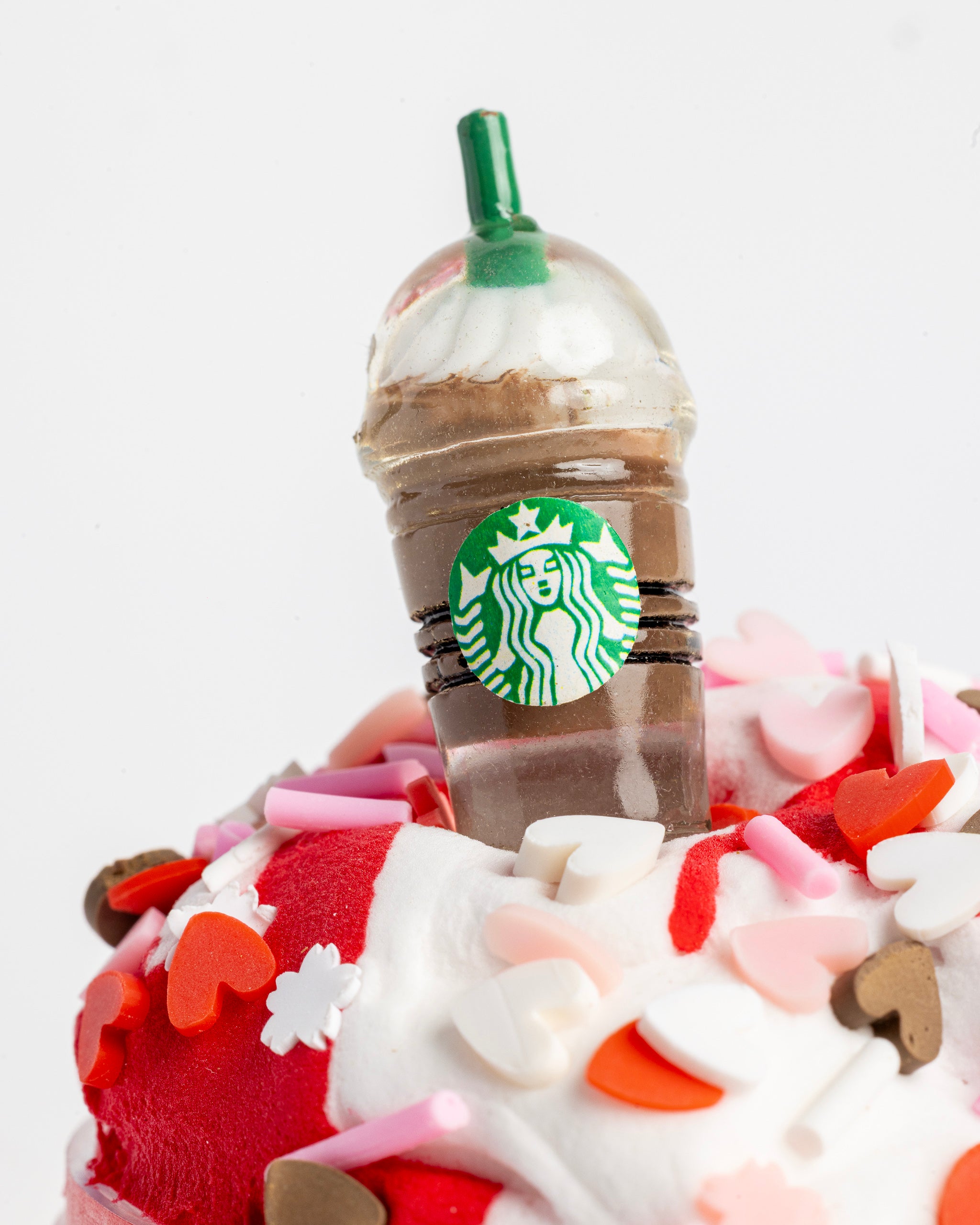 This rich brown slime, scented like chocolate cookies is topped with soft clay, festive sprinkles and a cute frappe charm perfect for sweet, sensory play.